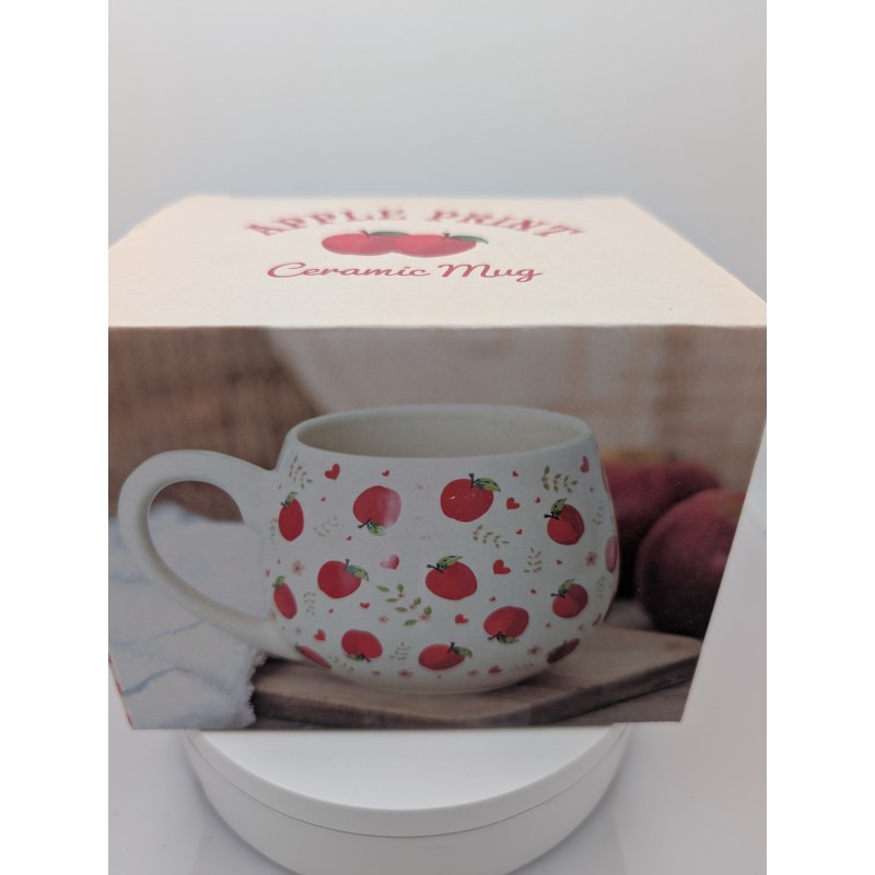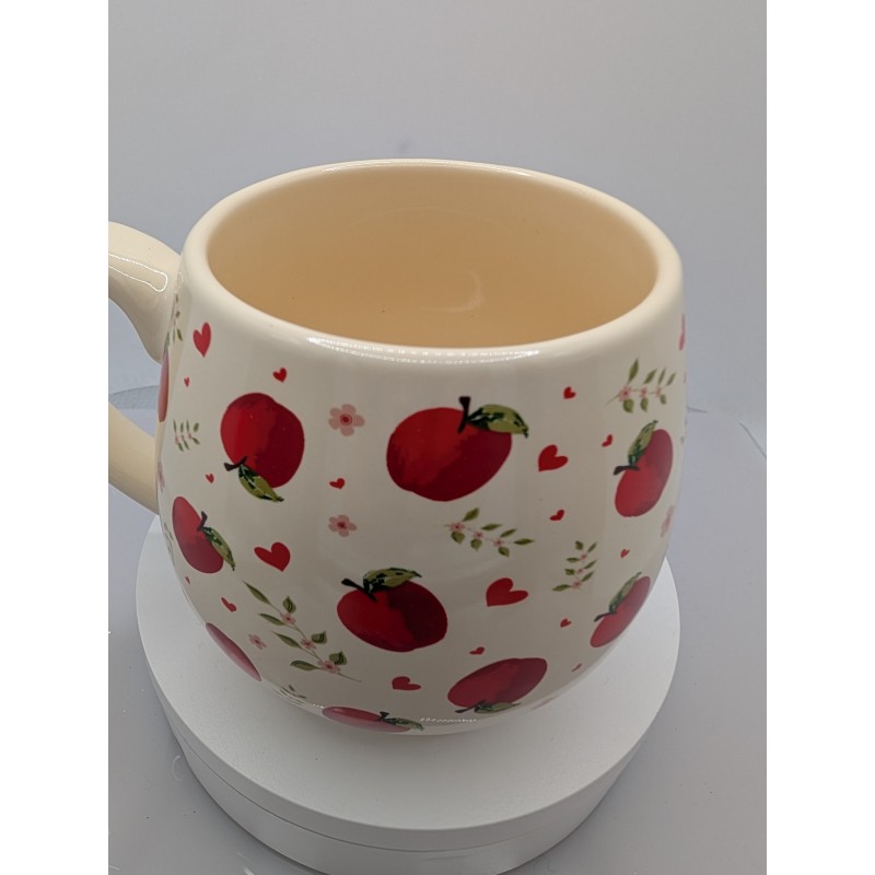 Mug céramique "pommes" beige .Adaptée au lavage machine et micro-onde.350ml.