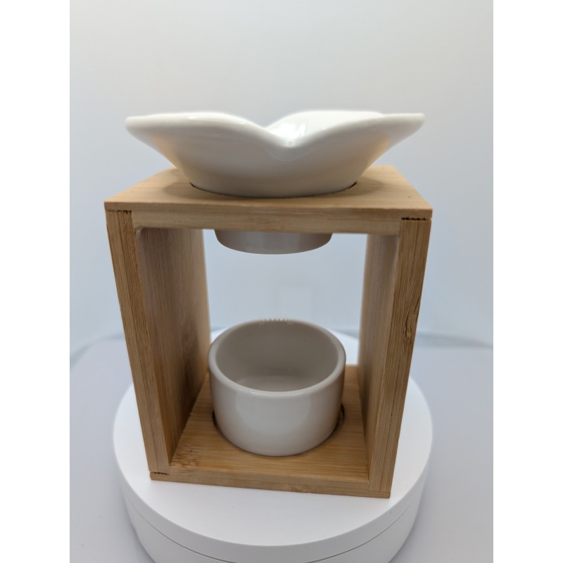 Brûle parfum en bambou et céramique pour fondants de cire et huiles essentielles.