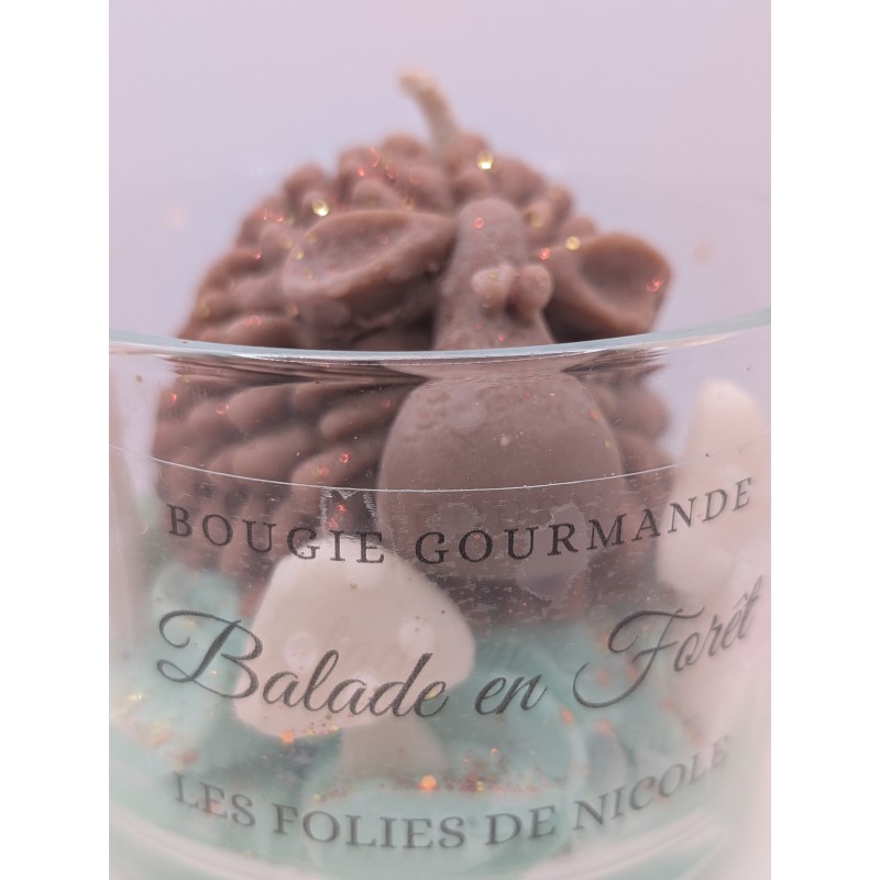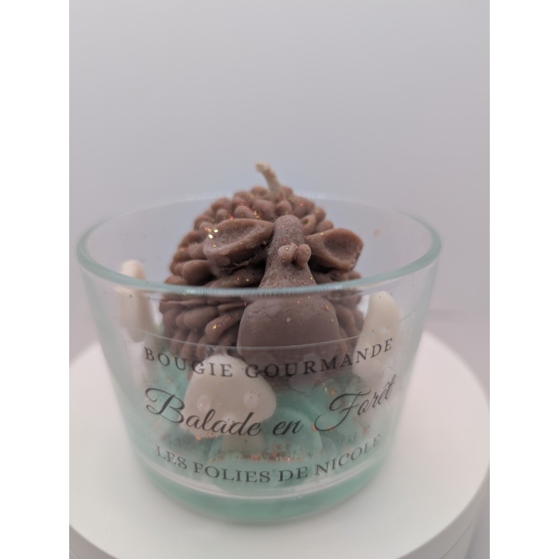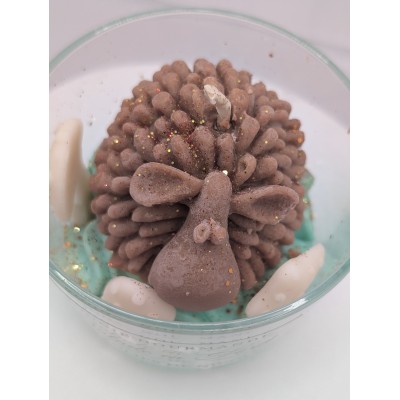 Bougie gourmande "Les folies de Nicole" balade en forêt.Laissez vous transporter par la magie d'une promenade au coeur des bois.Avec son adorable hérisson en cire et ses détails minutieux ,cette bougie évoqué la douceur et la sérénité ,ou l air frais se mêle aux senteurs boisées et réconfortantes.