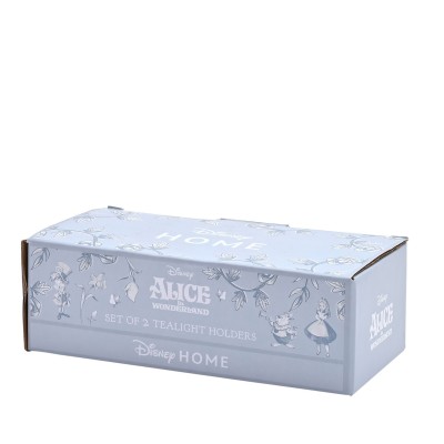Lot de 2 porte bougie en céramique avec une finition émaillée en rose et bleu Produit en licence Alice aux pays des merveilles.Taille:8x8x5