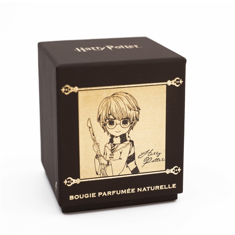 Bougie Harry de la maison Francal.Production française cire colza/coco 150g et parfums de Grâce . Produit sous licence officielle Harry Potter .40h de brûlage environ.Parfum: cuir anglais.